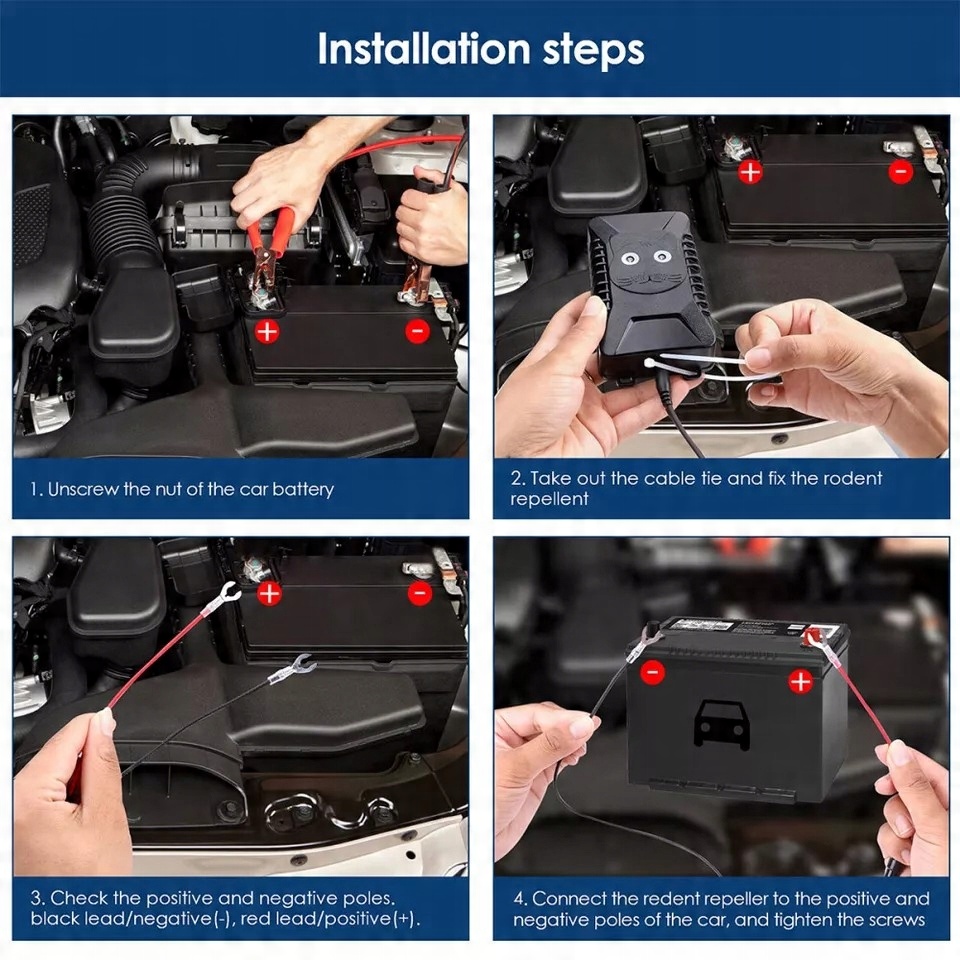 【Автоматичне ультразвукове релетор миші з двома сильними миготливими вогнями】: D Дуже ефективним релером Мінка може постійно змінювати ультразвукові хвилі з частотами від 18 кГц до 36 кГц, які ледь чують до вуха людини і запобігають тваринам адаптуватися до цього пакету. Пристрій також випромінює яскравий спалах світла, який відлякує гризунів та норки з вашої власності чи транспортного засобу. Він не містить приманки, він може бути використаний як альтернатива мишам пасток, коробки для приманки або живих пасток. (1) Покладіть 4 батареї AA (не включені). (2) Ви також можете підключити його до джерела живлення постійного струму 5-12 В за допомогою кабелю DC-USB (не включено). (3) Червона та чорна труба від репеленту комах у вигляді норки повинна бути підключена безпосередньо до 12-вольтового автомобіля. Якщо при запуску транспортного засобу виявляються вібрації, миша -релер перемикається на очікування. Коли машина зупиняється, миша відштовхує знову. Вам не потрібно турбуватися про вплив на людське тіло, ви можете безпечно використовувати його. Миша та щури виготовлені з екологічно чистого, високоякісного матеріалу ABS, міцного та теплового, і не завдають шкоди вашому автомобілю.