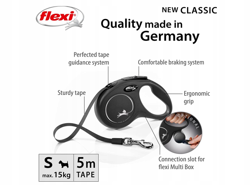 Повідець висувний FleXi New Classic, стрічка S 5м, чорний ПІСЛЯ ПОВЕРНЕННЯ