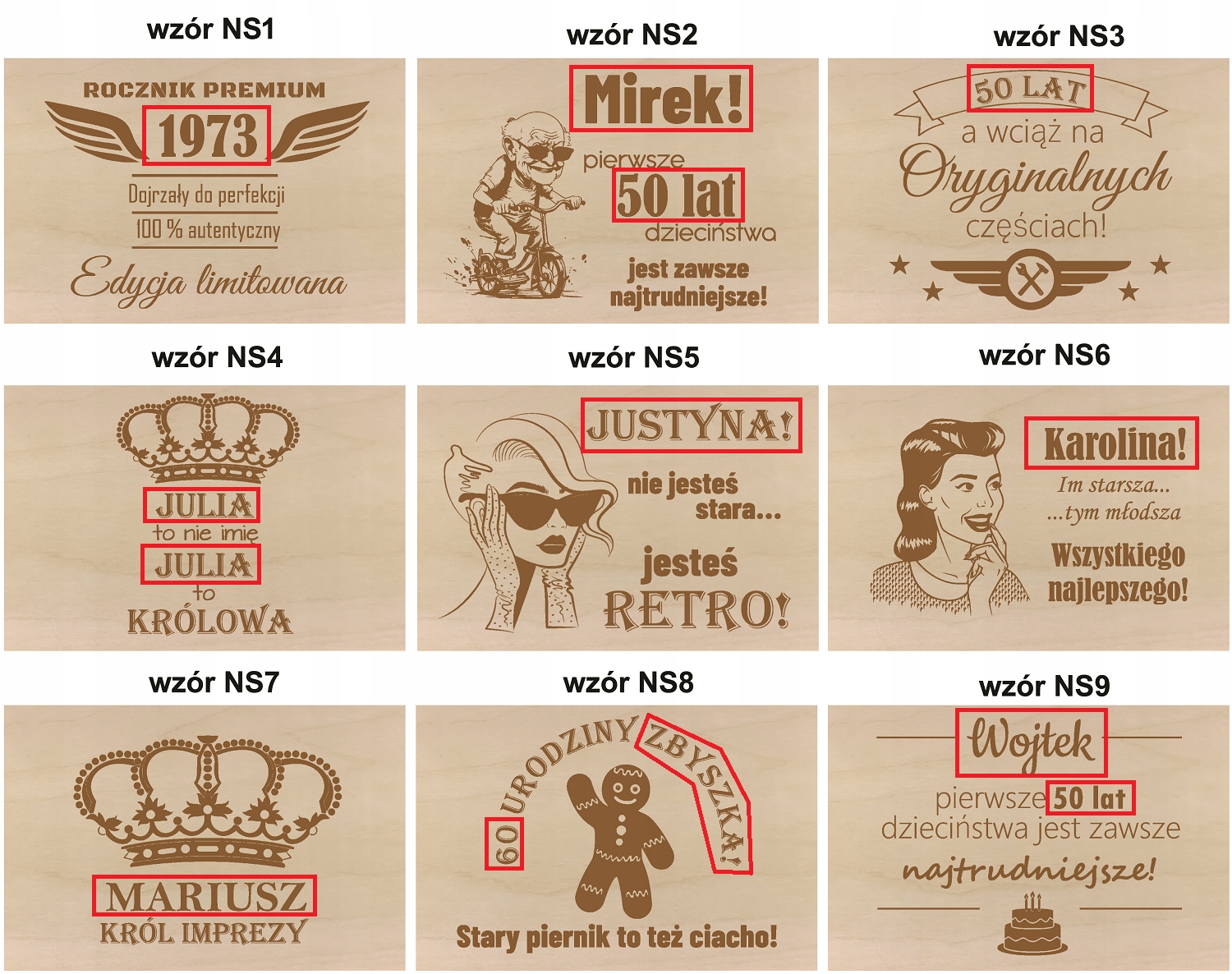 Кришка коробки прикрашена гравіюваннямз іменем/віком одержувача.