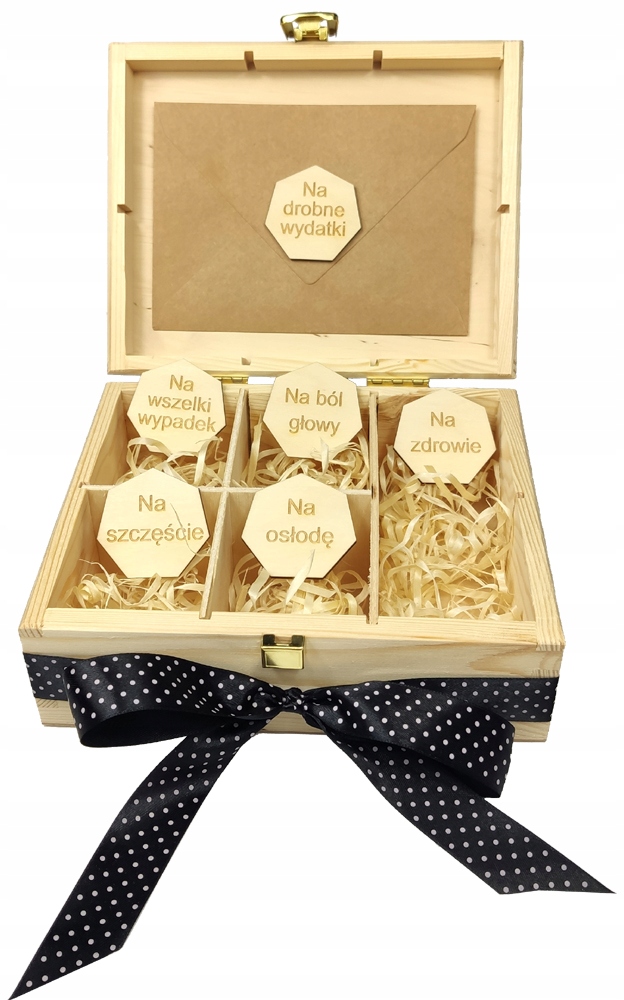 Дерев'яна коробка з місцем для маленьких подарунків на різні випадки життя.