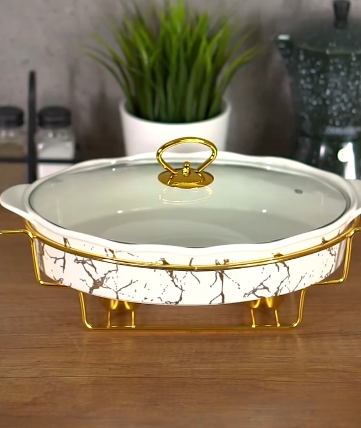 ✅Wysoka Jakość Materiałów: Wykonane z wysokiej jakości ceramiki, metalu i szkła, naczynie jest odporne na ciepło, nie rdzewieje, nie koroduje І він підтримує свій елегантний вигляд протягом тривалого часу використання. Їжа, безпечна для здоров'я. або харчування. Постійний розподіл тепла робить його ідеальним для подачі у вигляді фуршету, в той же час мінімізуючи вплив полум'я для безпеки гостей та персоналу. гуманізований дизайн робить його простим у використанні, а золота ручка шампанського додає елегантності та тонкості. Події самостійного обслуговування.
