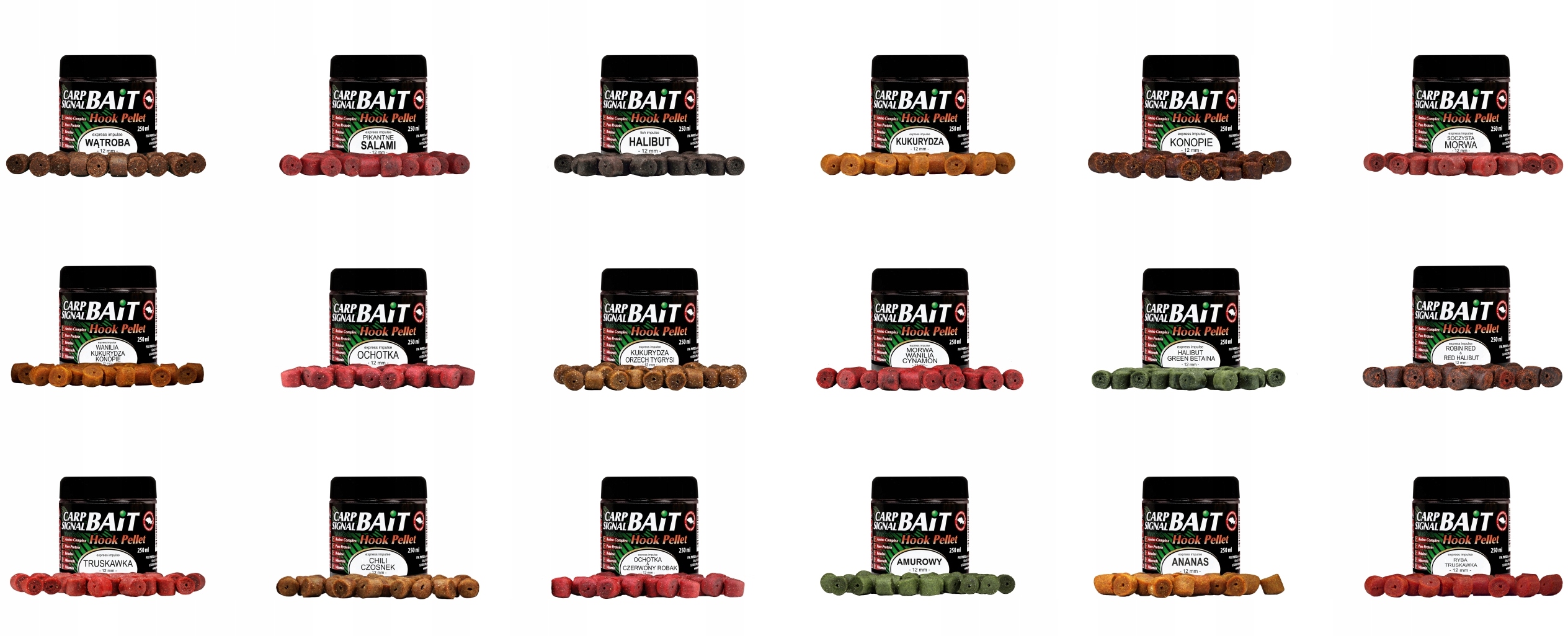 Пропонована за професією Plelets Haczykowe, - це серія чудових продуктів, адресованих головним чином рибалками, які чекають контакту з великою рибою. Незважаючи на те, що гранула є основою та приманкою коропа, він також добре працює в риболовлі для Amurs, лящу, мотузок, штанги, чабів та карасі. Гаціальні гранули містять велику кількість рибного борошна та найвищу якість риб’ячого жиру, що гарантує високу харчову цінність. Вони також містять ряд інгредієнтів, що стимулюють рибу для прийому їжі, які забезпечують тривалий термін та інтенсивну приманку. Залежно від типу та діаметра, вони розчиняються у воді в різний час приблизно 4-8 годин.