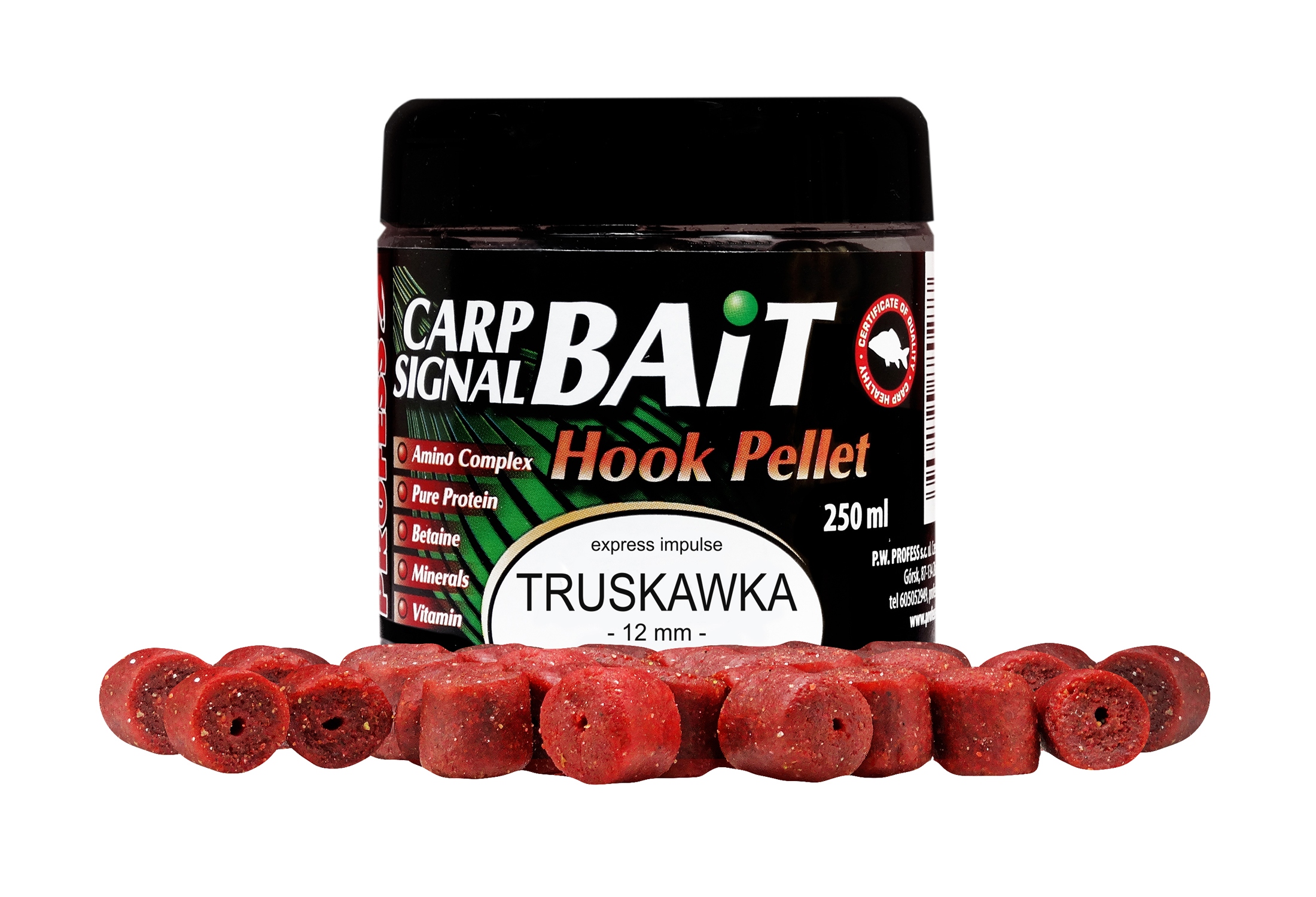 Імпульс -гачок Plelet Express - це дуже ефективна приманка для риб -коропа, вони містять ряд речовин, що стимулюють споживання їжі. Це гранули, спеціально розроблені з точки зору складу, виготовлені з найкращих інгредієнтів. Вони містять велику кількість амінокислот та жирних кислот. Їх головне завдання - залучити рибу навколо нашого набору та провокувати їх за їжу. Для їх виробництва використовувались найкращі аромати та аромати. Тому, кинувши їх у воду, вони швидко починають працювати і відкидають всю привабливість речовин, які спокушають рибу зі своїм смаком і запахом. Гранули з експрес -серії імпульсів - це дуже ефективна приманка для великих риб -коропа. Вони розчиняються у воді залежно від діаметра та температури води близько 4 ~ 8 годин