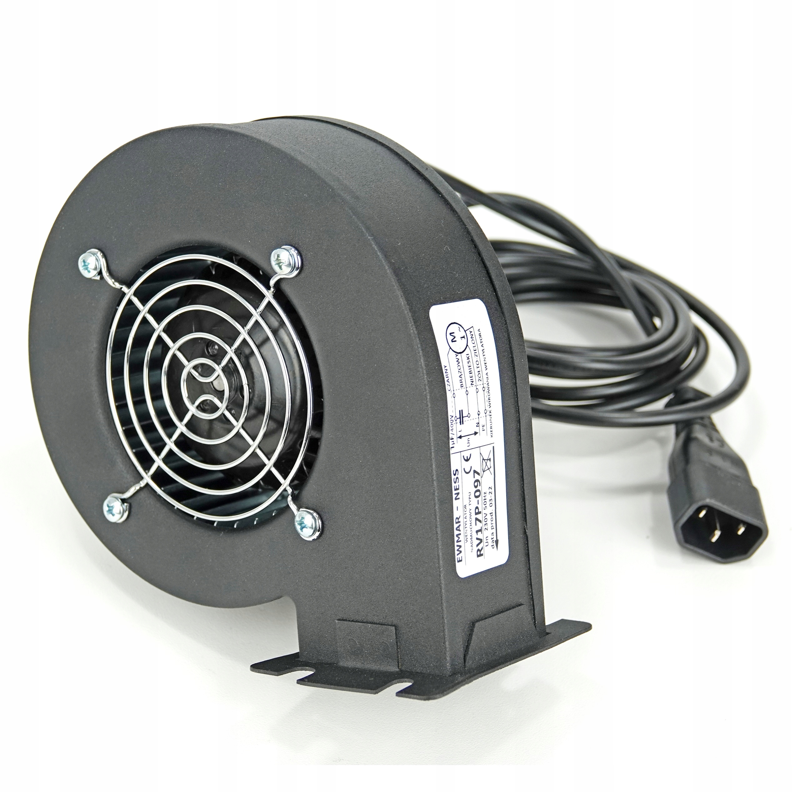 Призначений для універсальних котлів центрального опалення на дрібному вугіллі та пелетах потужністю від 7 до 20 кВт. Його компактна конструкція дозволяє встановлювати його поруч із дозаторами пелет, де простір обмежений. Повітродув виготовлений з пофарбованого листового металу, тому він міцний і довговічний. У корпусі встановлений двигун із зовнішнім ротором. Вхідний отвір захищено сіткою і діафрагмою для регулювання сили обдування. Вихідний отвір завершується хомутом з отворами для кріплення.