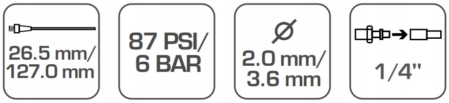 - Довжина сопла: 26,5 мм/127,0 мм;