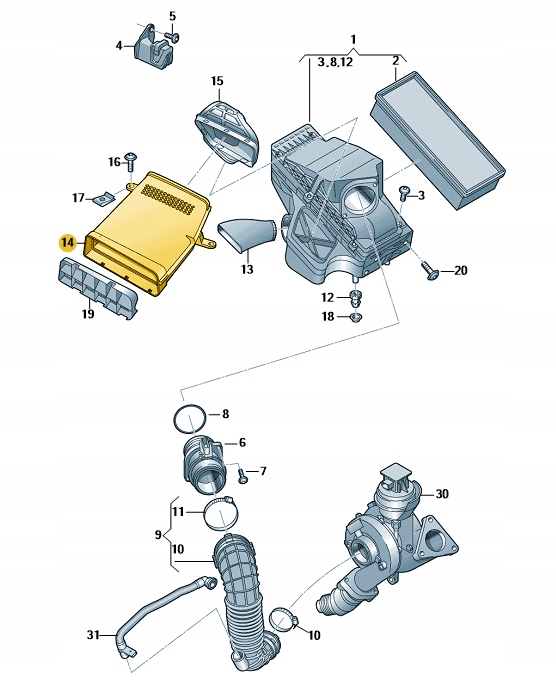 Оригінальний повітрозабірник для фільтра AUDI Q5 від ASO