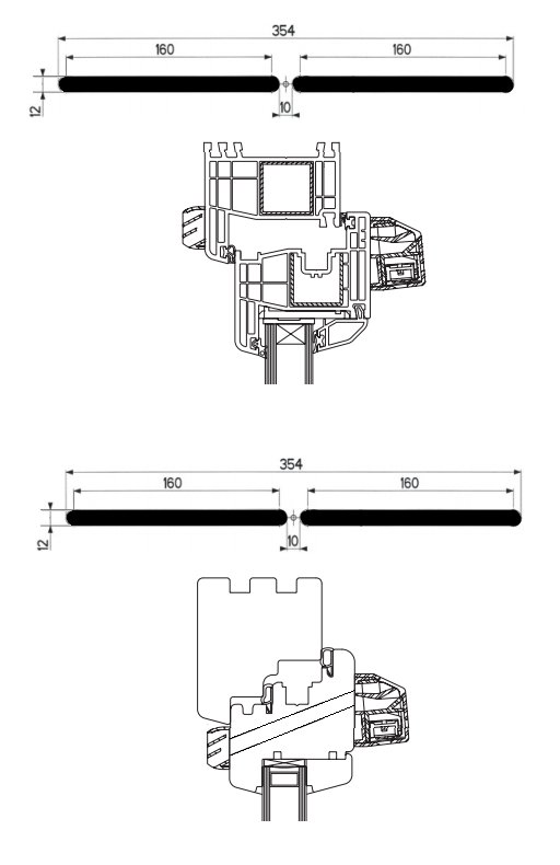 Наскрізні отвори мають бути виконані відповідно до форм і розмірів, наведених нижче. Повітровідвідник і капельник кріпляться до профілю за допомогою 5 шурупів. Робимо наскрізні отвори у верхній частині вікна, в рамі над ущільнювачем і в стулці вікна під ущільнювачем.