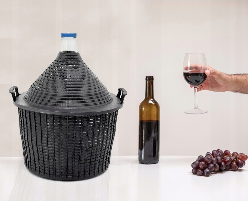 вузька -гляда скляна куля призначена для бродіння та зберігання алкогольних напоїв, таких як: вино, пиво, дистилят, настоянки, соки та інші рідини. пластиковий, знімний корпус дозволяє ретельно мити повітряну кулю, виконуючи функцію захисту від скла від синців. Скло, з якого виготовляються повітряні кулі, - це натрієве скло (єдиний алкоголь) з усіма схваленнями, які дозволяють контактувати з їжею. Це продукт одного з найкращих італійських сталевих робіт.