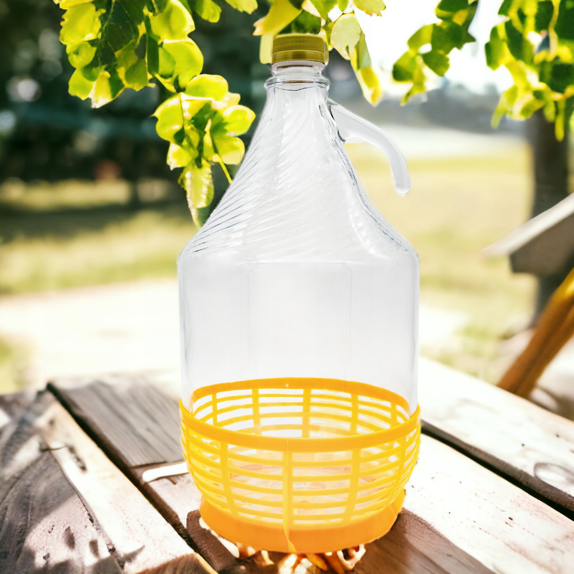 Галон у кошикуз високоякісного загартованого натрієвого скла - ідеально підходить для контакту з продуктами, що містять спирт. Пляшка ідеально підходить для зберігання всіх видів вин, пива та меду. Він має зручну кришкудля швидкого доступу до вмісту галону, а зручна ручка дозволяє безпечно переносити. Оснащений кошиком, щоб запобігти поломці. Універсальний продукт корисний у кожному домі.