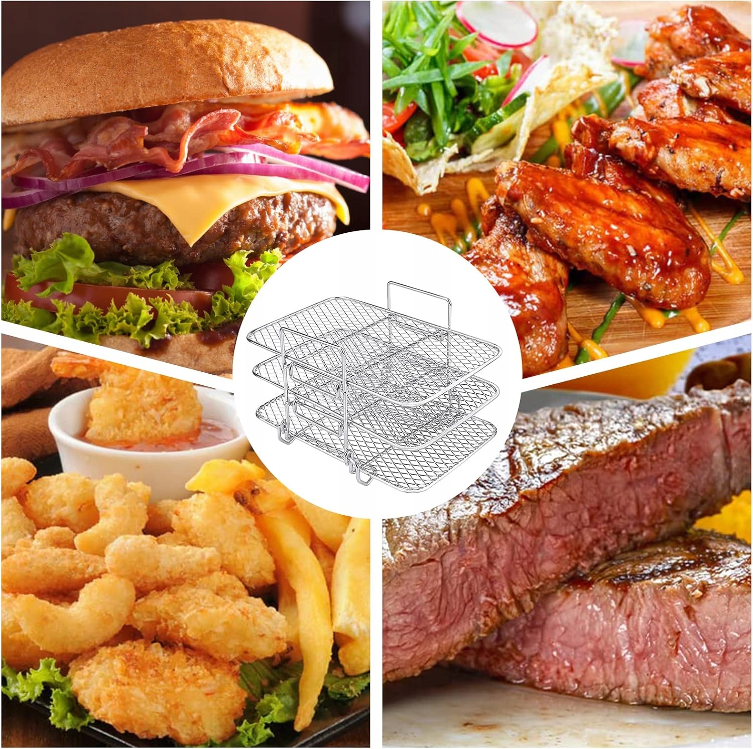 💎💎 💎💎 💎💎 💎💎icency аксесуари для повітряного фритюрниці: можна використовувати в повітряному фритюрті або духовці для випічки для випічки або приготування різних страв, таких як курка, риба, бекон, овочі, картопля фрі та інші. Їх також можна використовувати як дренажну підставку. Просто зневоднюйте все, що завгодно, включаючи м'ясо, фрукти та овочі. Забезпечте здорову, поживну та смачну їжу для себе та своєї родини.