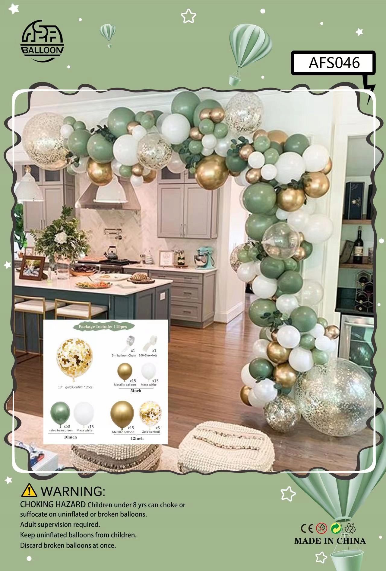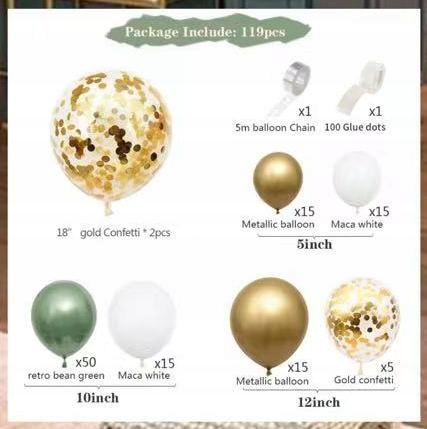 ПОВІТРЯНІ КУЛІ BOHO ГІРЛЯНДА З ПОВІТРЯНИХ КУЛЬ ЗЕЛЕНА 119 ШТ
