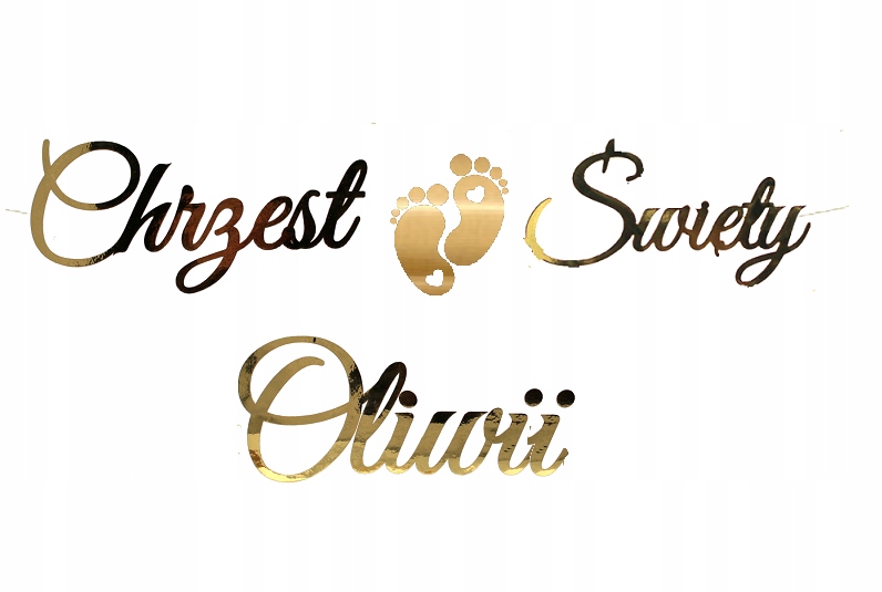 БАНЕР Напис золоте дзеркало ХРЕЩЕННЯ + БУДЬ-ЯКЕ ІМ'Я довжина всього банера бл. 100 см