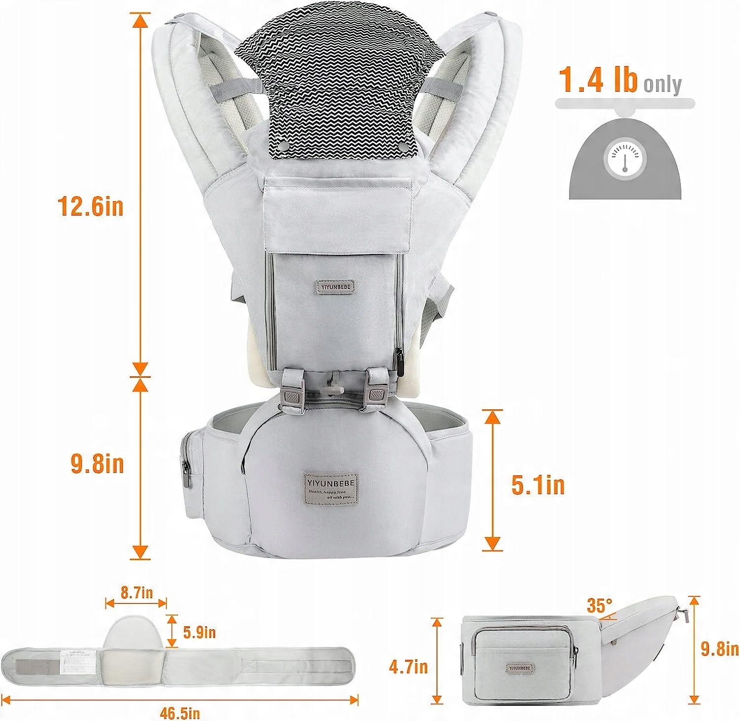 ✅ Зручне стегно: довжина стегна 22 см, висота 25 см, ширина 15 см. Поверхня виготовлена з силіконової протиковзкої накладки, наповнена дихаючою губкою, амортизацією для збільшення циркуляції повітря. Це дозволяє вашій дитині зручно сидіти на ньому, а не плутатися в ременях. Стегна дитини мають велику поверхню контакту з основою, що більше розвантажує поперековий відділ хребта.