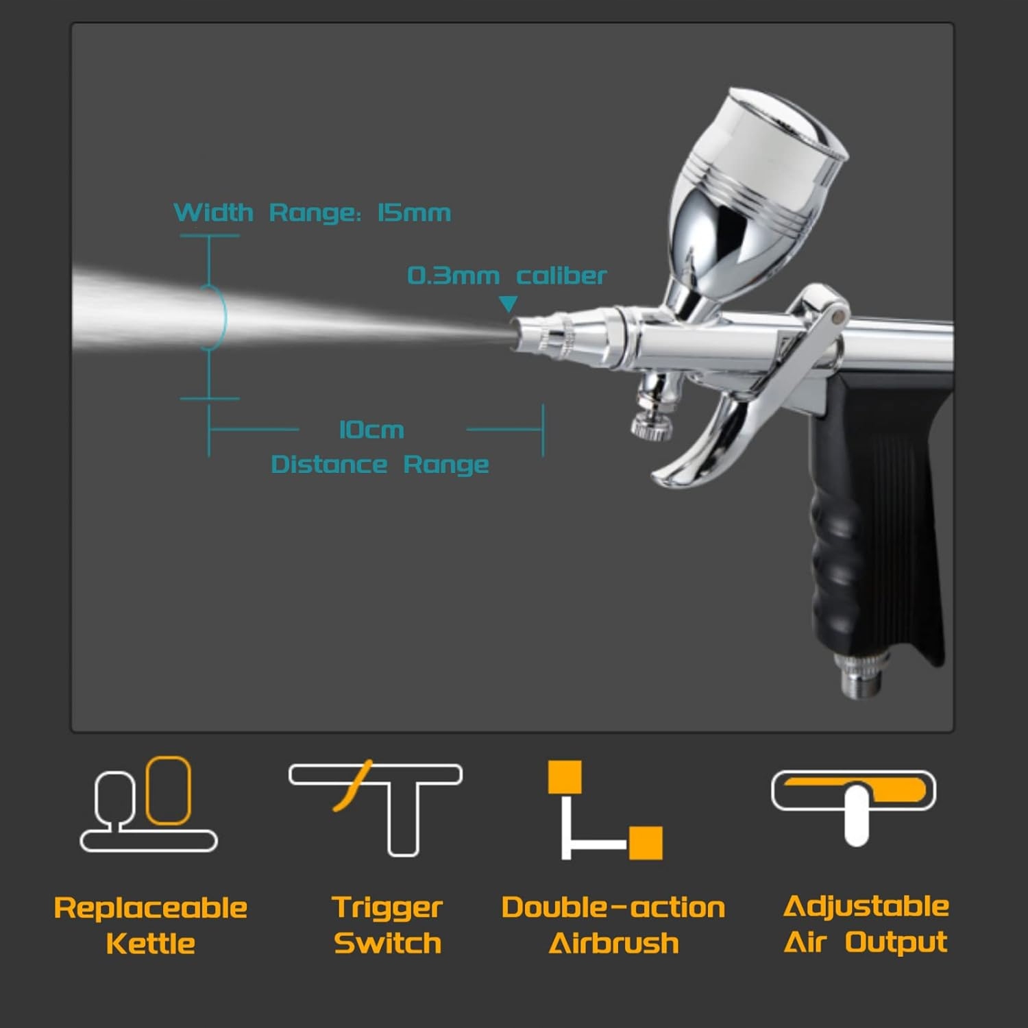 Аерограф служить багатьом цілям. В ідеалі підходить для аерографа, затінення моделей, живопис (транспортні засоби, велосипеди, моделі тощо), художні малюнки, кондитерські вироби тощо