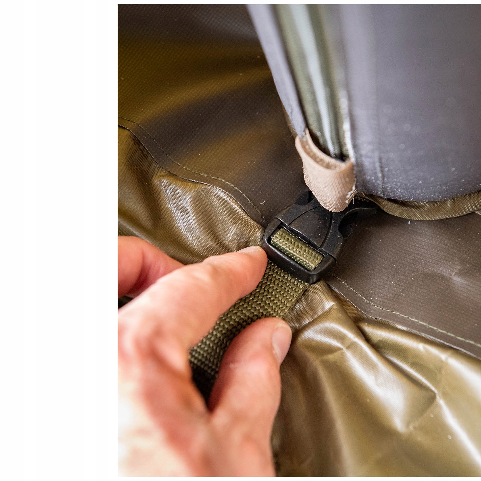 Намет соціального укриття з повністю накачаною рамою, призначеним для витримки набагато більше, ніж традиційні конструкції. Швидко розгортається, насосна трубка дозволяє легко надутись і прикріпити до землі. Виготовлений з довговічного поліефірного матеріалу Фокса Хакі з водонепроникним 8000 мм. Цей намет забезпечує оптимальний захист від Сонця та тепла завдяки ламінованому "чорному виходу" на стеляній панелі. Це універсальний дизайн з повністю знімними дверима та бічними панелями та багатьма версіями вікон, а вихід із задньої частини дозволяє використовувати класичний намет або Броллі як розширення. Оснащений високоякісним насосом подвійної ручки та добре продуманою системою натягу струн. Цей намет буде працювати в будь -яку погоду.