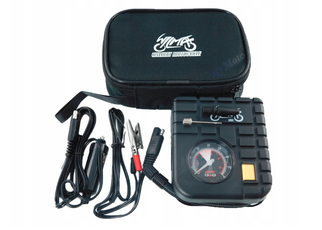 Мотокомпресор WMMotor — ідеальний пристрій для накачування мотоциклетних шин. Завдяки дуже маленьким розмірам він поміститься практично в будь-якому салоні мотоцикла. Крім того, компресор продається разом зі штекером прикурювача та необхідною проводкою.