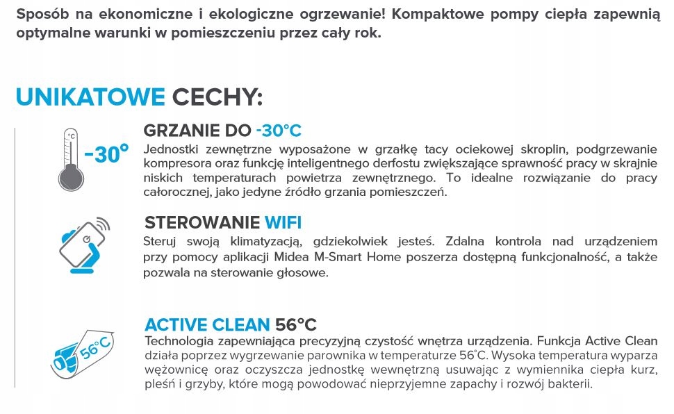 Це сучасний пристрій, присвячений рок -кінцевій роботі. Характерною особливістю міда теплішого блану є компактні розміри, завдяки яким він буде працювати в місцях, де трапляються невеликі зони складання. У своєму обладнанні Blanc Midea Harder Blanc є обігрівачем крапельного п’яного, опалення компресора, а також інтелектуальної технології розморожування. Крім того, пристрій працює в широкому діапазоні температури, покриваючись від - 20 ° C до + 50 ° C в діапазоні охолодження та від - 30 ° C до +24 ° c в діапазоні нагрівання. Завдяки цьому пристрій може бути єдиним джерелом тепла в кімнаті. зворотне тепловий насос . 4