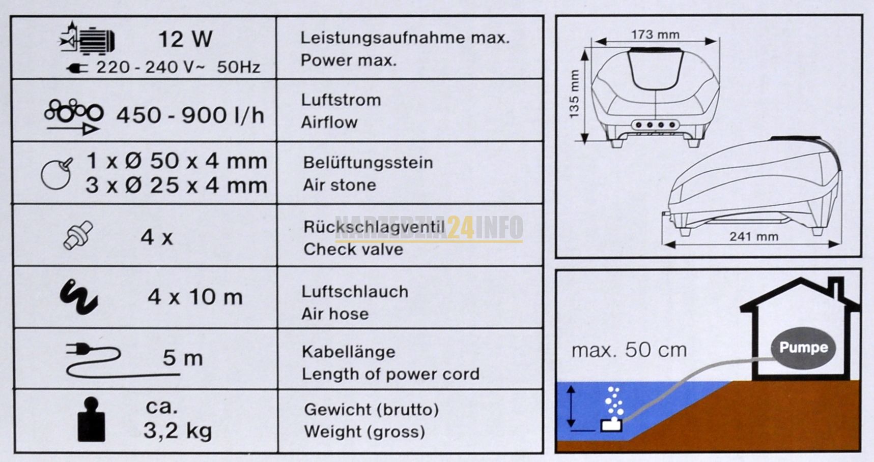 насоси для аерації ставків і ставків також використовуються в акваріумах. Вони ідеально підходять для безперервної роботи і призводять до безперебійного і навіть збагачення води киснем.