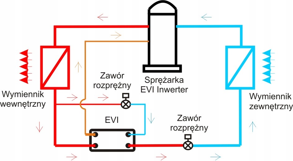 Технологія EVI дозволяє підтримувати температурний параметр при низьких зовнішніх температурах. Інверторна технологія забезпечує стабільну роботу компресора, адаптуючи потужність пристрою до мінливих потреб. Поєднання обох технологій забезпечує помітне підвищення ефективності пристрою до 20% порівняно зі стандартними тепловими насосами. Роздільна установка захищає пристрій від можливого замерзання води (моноблок) в трубах