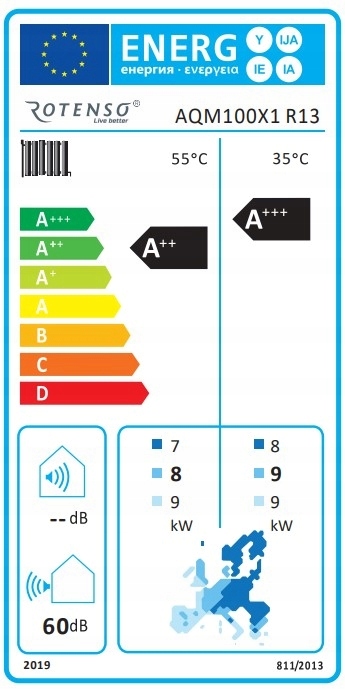 Це дуже ефективний агрегат із високим класом енергоефективності. A+++ (для температури подачі 35°) і A++ (для температури подачі 55°).