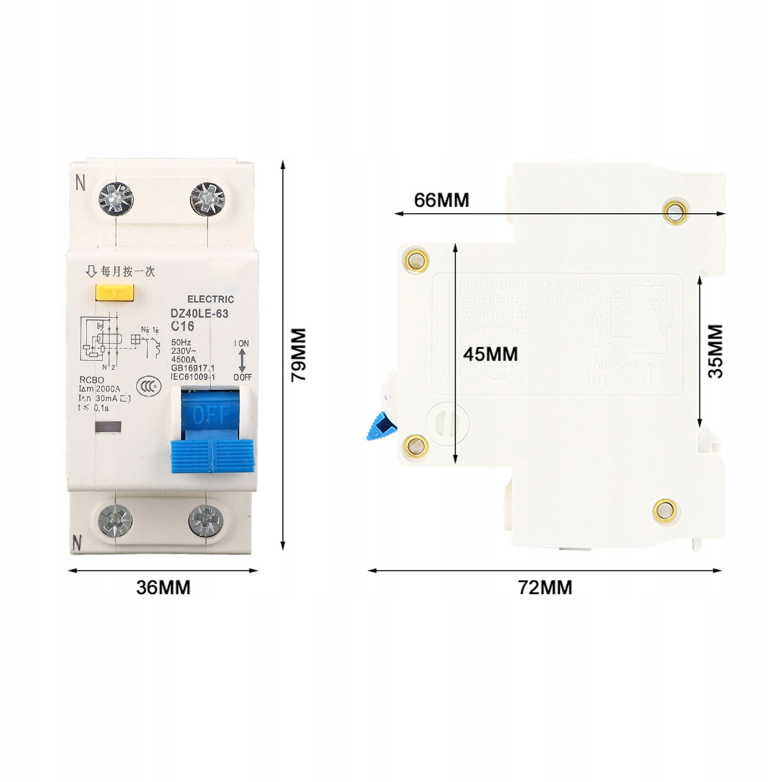 Повітряний вимикач із захистом від витоку, одноручковий автоматичний вимикач для домашньої електричної системи 230 В 1P+N DZ40LE-63 16A