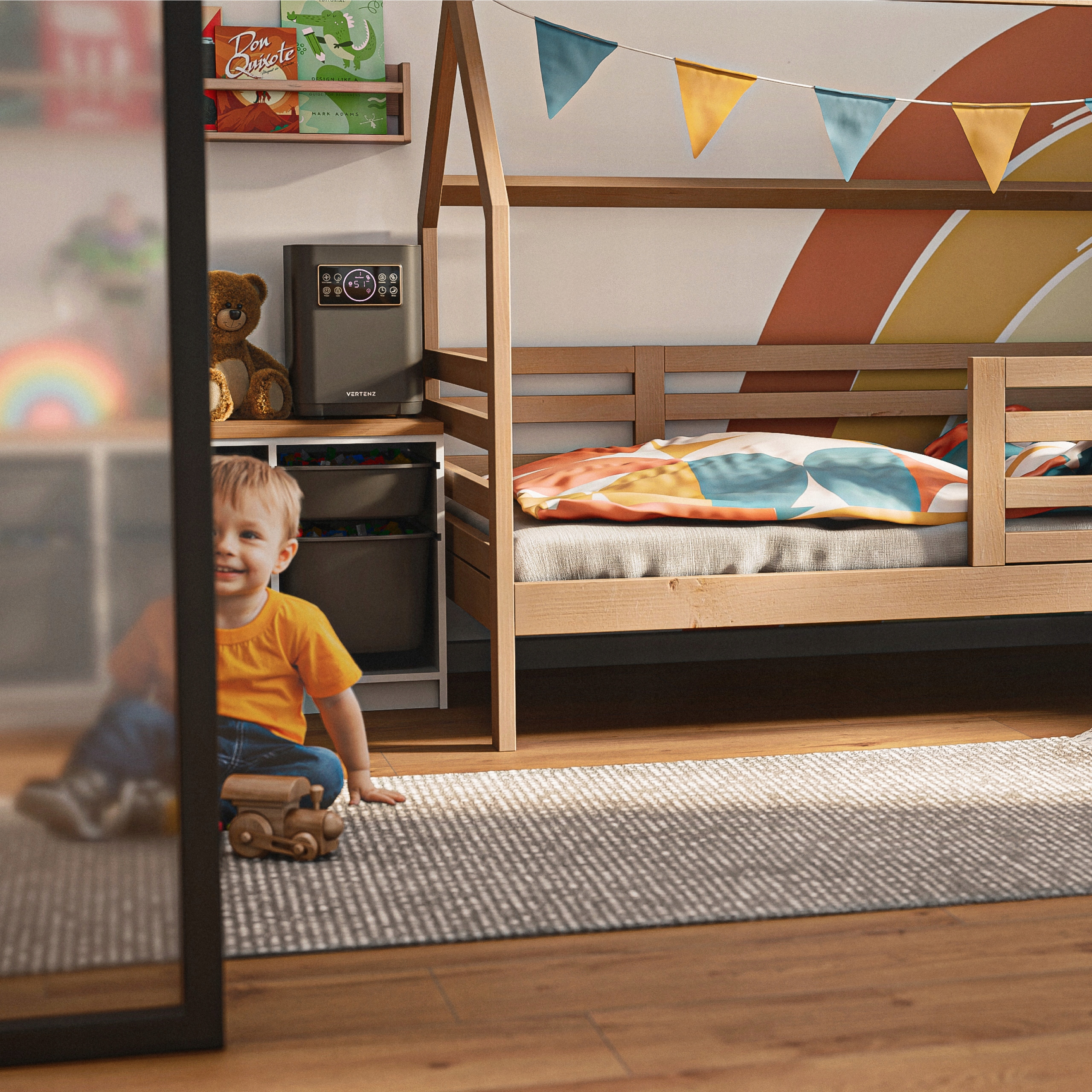 сенсорна панель дозволяє швидко та інтуїтивно керувати всіма функціями. За допомогою одного дотику ви налаштуєте режим роботи пристрою, зволожуючий рівень або запускаєте спеціальні функції. На дисплеї відображається поточна інформація про роботу пристрою, наприклад, рівень вологості повітря та вибраного режиму гідратації.