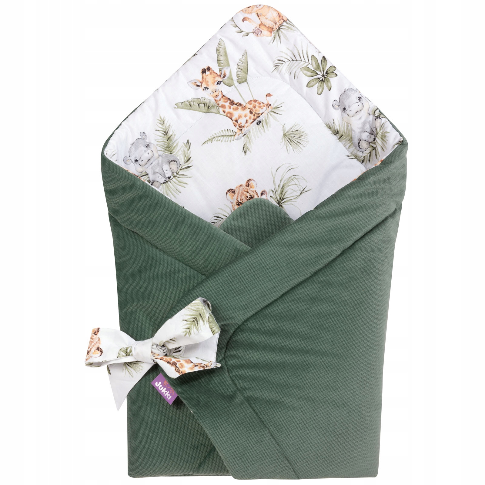 Ковдра виготовлена з бавовни з обох сторін. Має красивий бантик, завдяки якому ми можемо регулювати спосіб його зав'язування. Внутрішня частина пеленання складається з шару антиалергічного силіконового нетканого матеріалу, який є ідеальним наповнювачем, надаючи сповиванню належної жорсткості, одночасно даруючи дитині відчуття м’якості та комфорту.