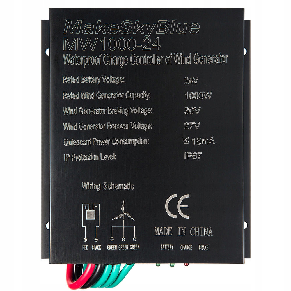 Вітрогенератор з номінальною потужністю 1 кВт досягає повної потужності за швидкості вітру приблизно 12 м/с. Загальна вага приблизно 30 кг. Діаметр ротора 2,1 м. Номінальна напруга 24В. Генератор з неодимовими магнітами. Троси не скручуються завдяки використанню ротатора з вугільними щітками. Швидкість обертання 650 об/хв. Шум при номінальній швидкості вітру приблизно 42 дБ. Якщо швидкість вітру занадто висока, контролер зупиняє турбіну. Рекомендована висота установки від 4м. У комплект входить хомут для кріплення вентилятора на щоглі.