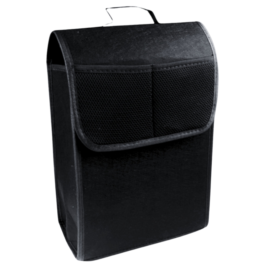 Практичний органайзер із міцного повсті, що дозволяє легко зберігати весь набір. Оснащений додатковими кишенями і ручкою для перенесення, що підвищує його функціональність. Допомагає підтримувати порядок у багажнику та забезпечує швидкий доступ до обладнання.