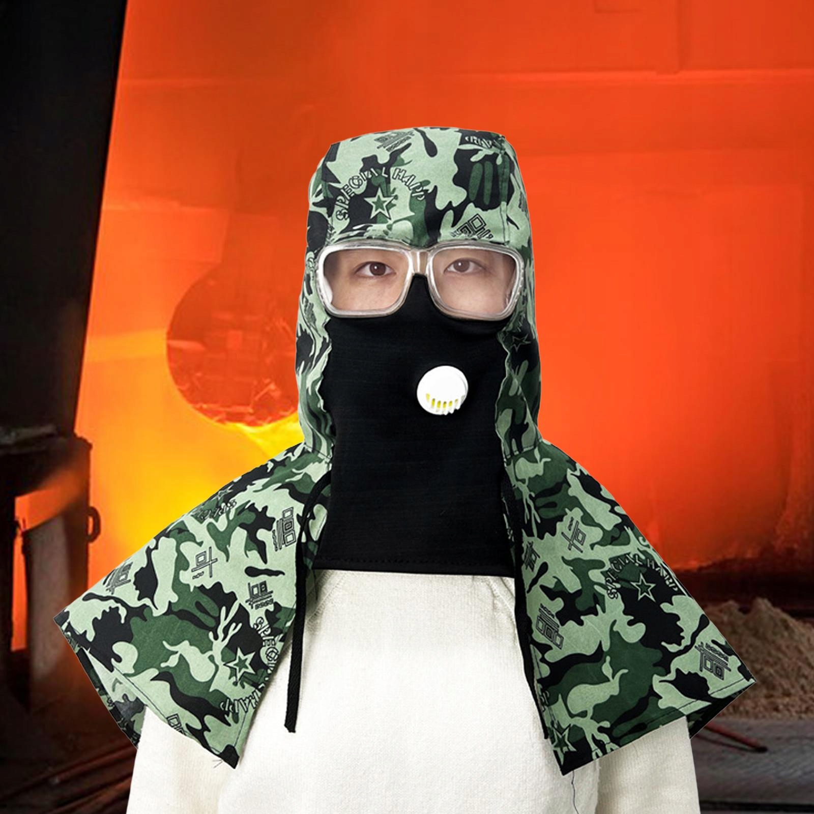 [універсальний захист]: дихаючий капюшон має форму шаленого капелюха, яка може повністю покрити голову та плечі, забезпечуючи універсальний захист.