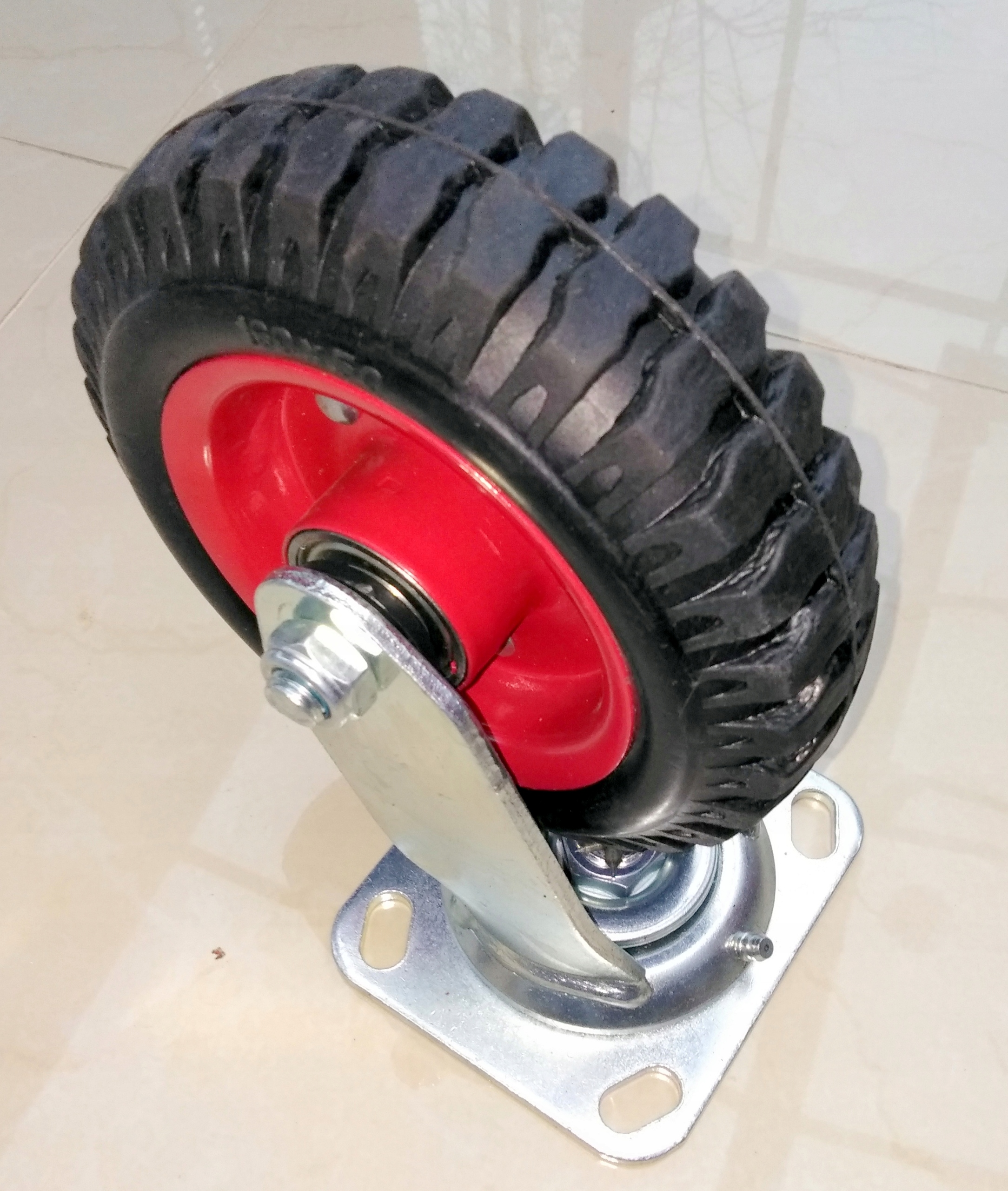 Чорна стандартна суцільна гумова шина, відновлений протектор, штампована сталева втулка, порошкове покриття, подвійний кульковий підшипник