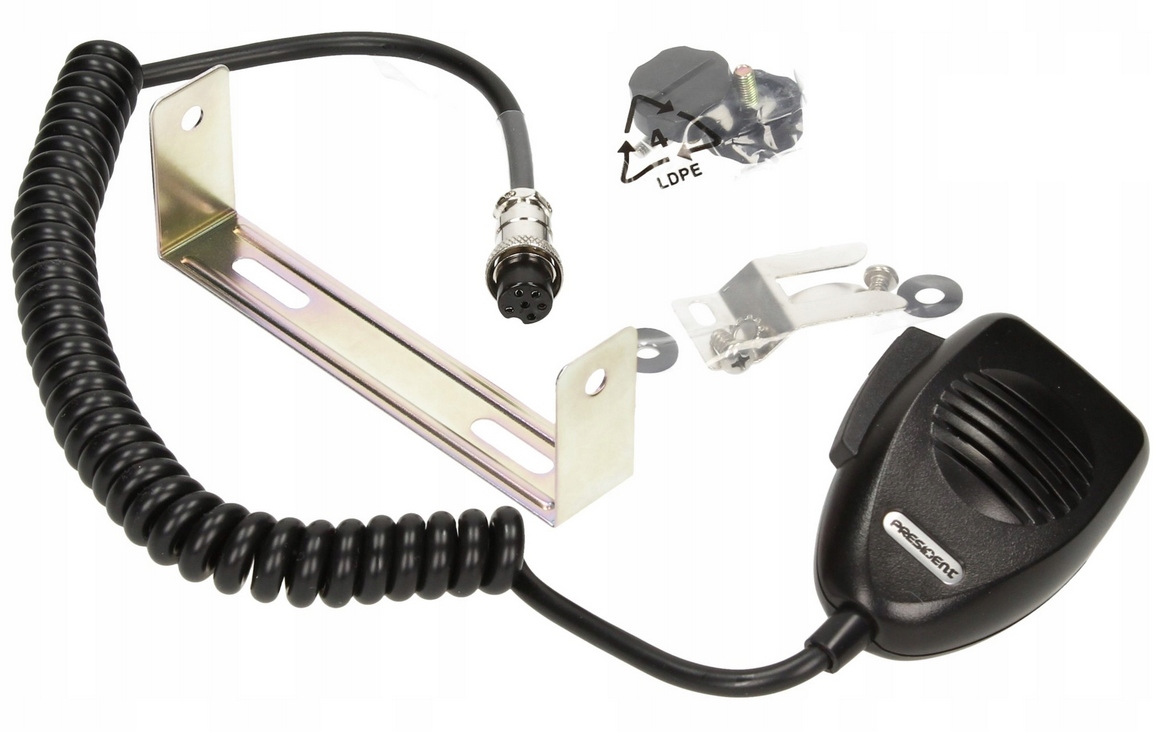 В набір входять всі необхідні елементи кріплення. Завдяки невеликим габаритам магнітоли можна легко встановити в будь-якому автомобілі. Монтажний кронштейн і гвинти входять в комплект. Тримач - підвіска для мікрофона дозволить вам закріпити радіо в будь-якому місці.