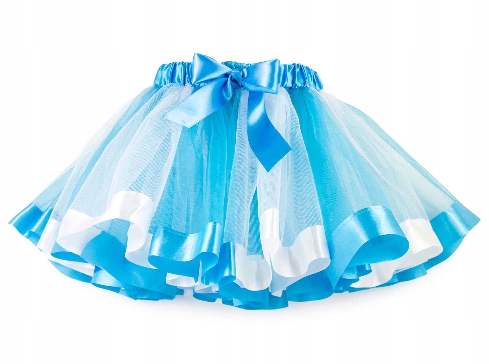Спідниця: виготовлена з багатьох різнокольорових широких смужок фатину, які перекривають один одного. Чудово сидить. Крім того, вона струмує завдяки підгину на кінцях. Смуги фатину не з’єднуються між собою, тому що це різновид спідниці ТУТУ. Без підкладки. Ідеально підходить для колготок або легінсів. Атласний пояс і дуже гнучка зручна гумка.