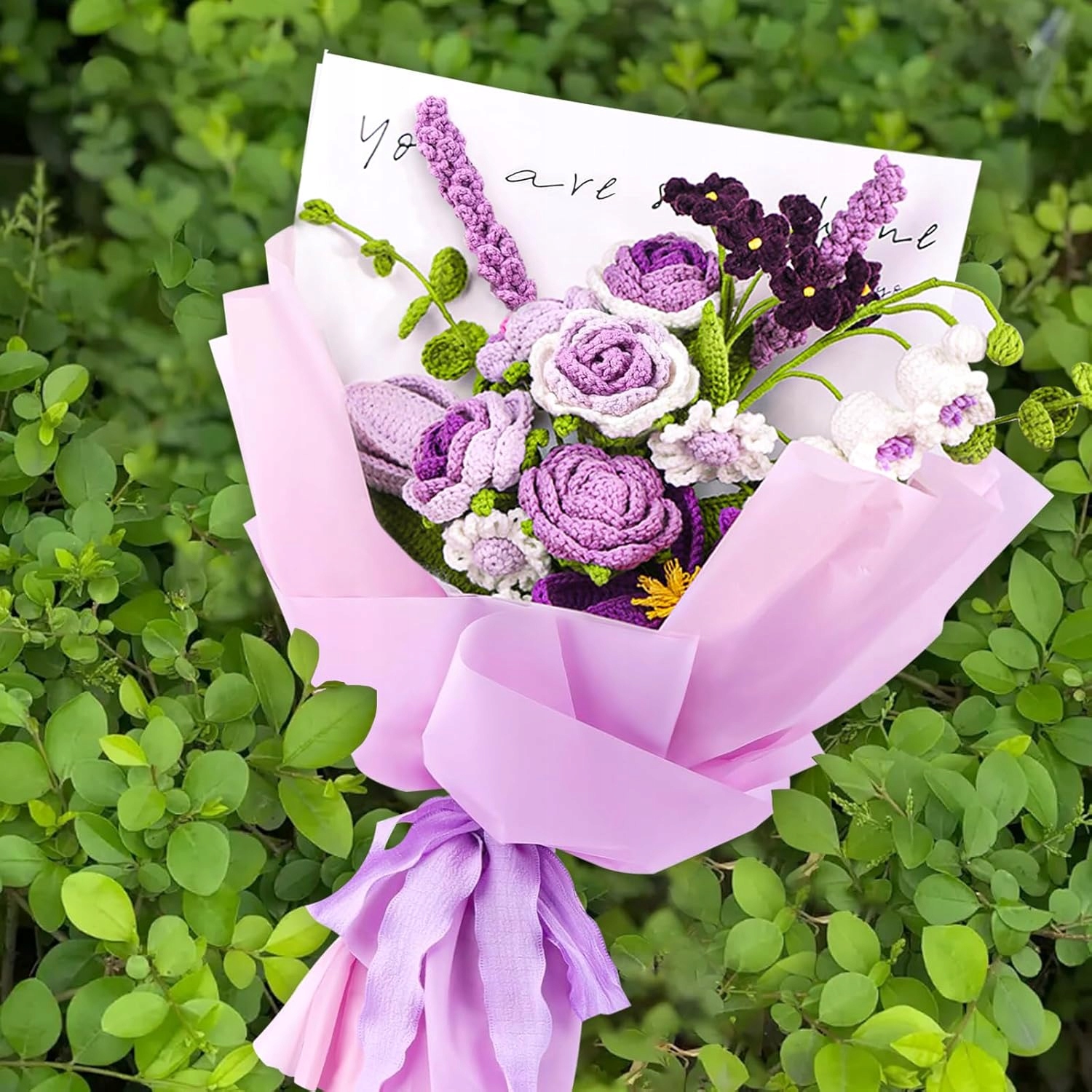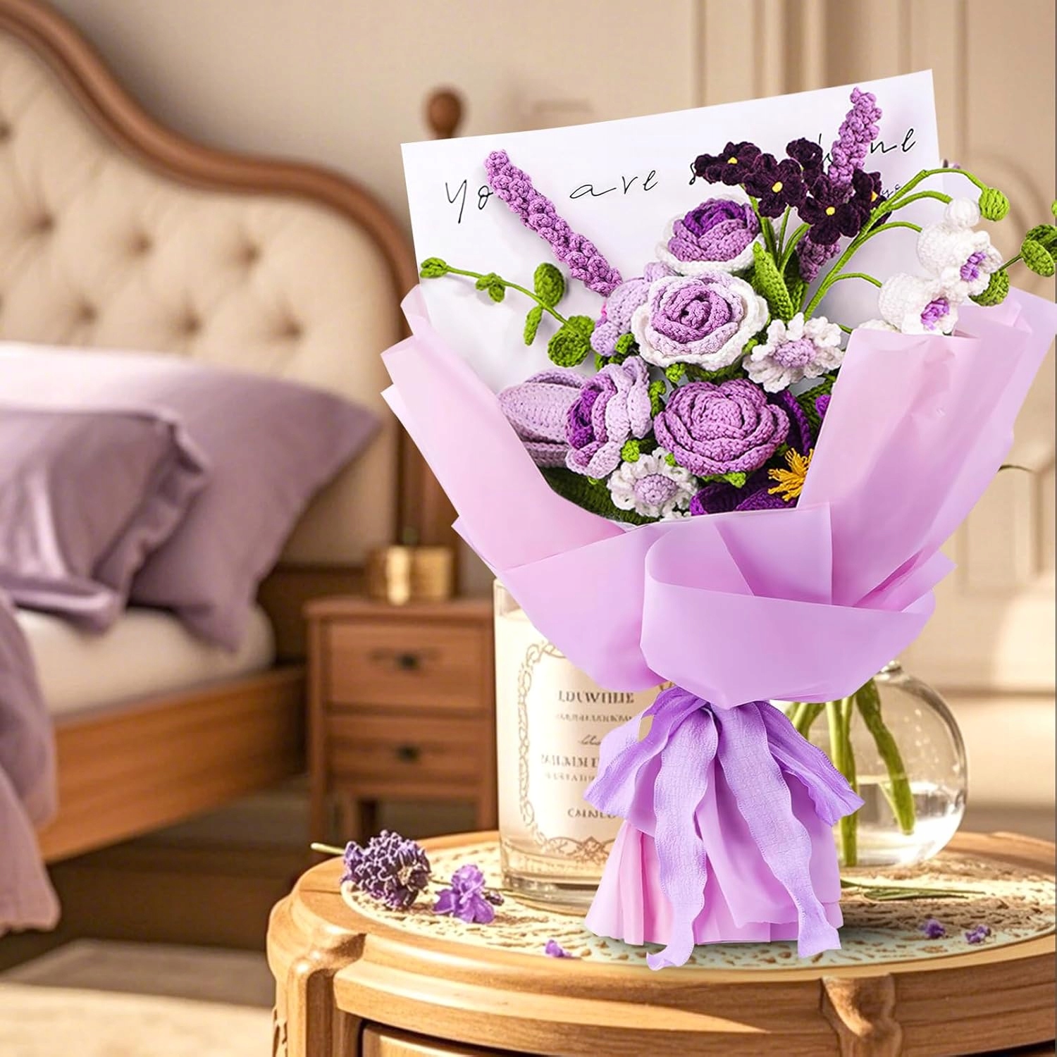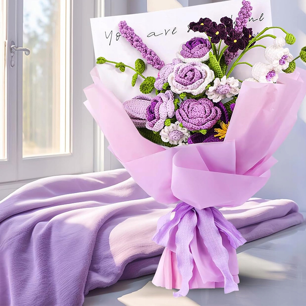 Набір розроблено для початківців і містить чіткі інструкції, які допоможуть вам легко освоїти техніку в’язання гачком і впевнено створити свій власний унікальний букет фіолетових троянд.
