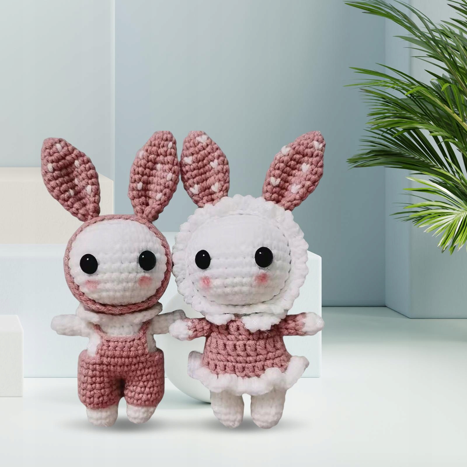 Повний набір для в'язання гачком Кролики. Набір для рукоділля, рожевий