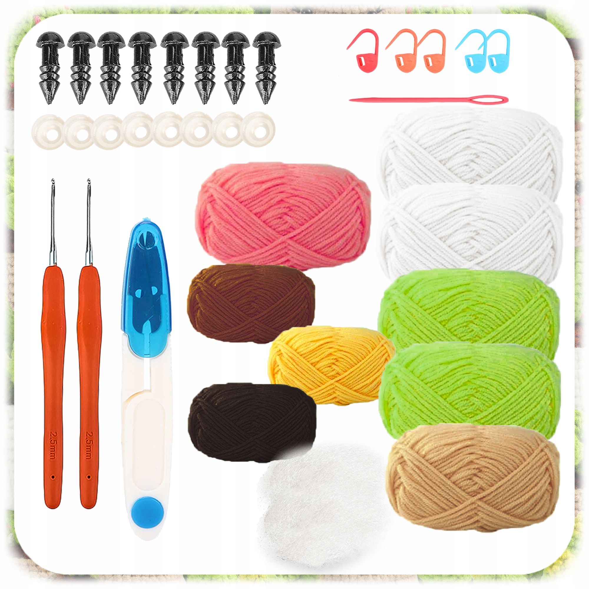 ✔️ 2 гачки (2,5 мм) - легкі, зручні, ідеальні для роботи з м'якою пряжею.