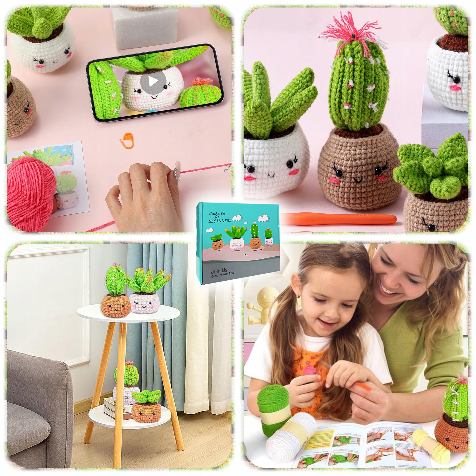 Створюйте чарівні, усміхнені кактуси та сукуленти, які піднімуть настрій будь-якому інтер’єру. Набір для в’язання гачком для початківців — це поєднання навчання, творчості та розваг — ідеальний спосіб розпочати свою пригоду в’язання гачком.