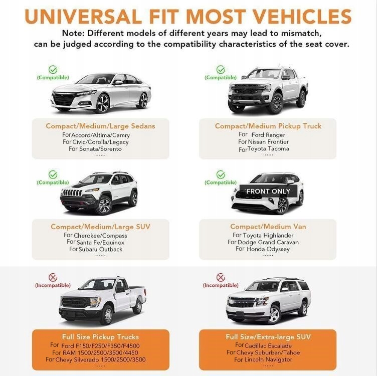 Примітка: різні моделі різних років можуть призвести до невідповідності, про що можна судити за характеристиками сумісності чохла сидіння.