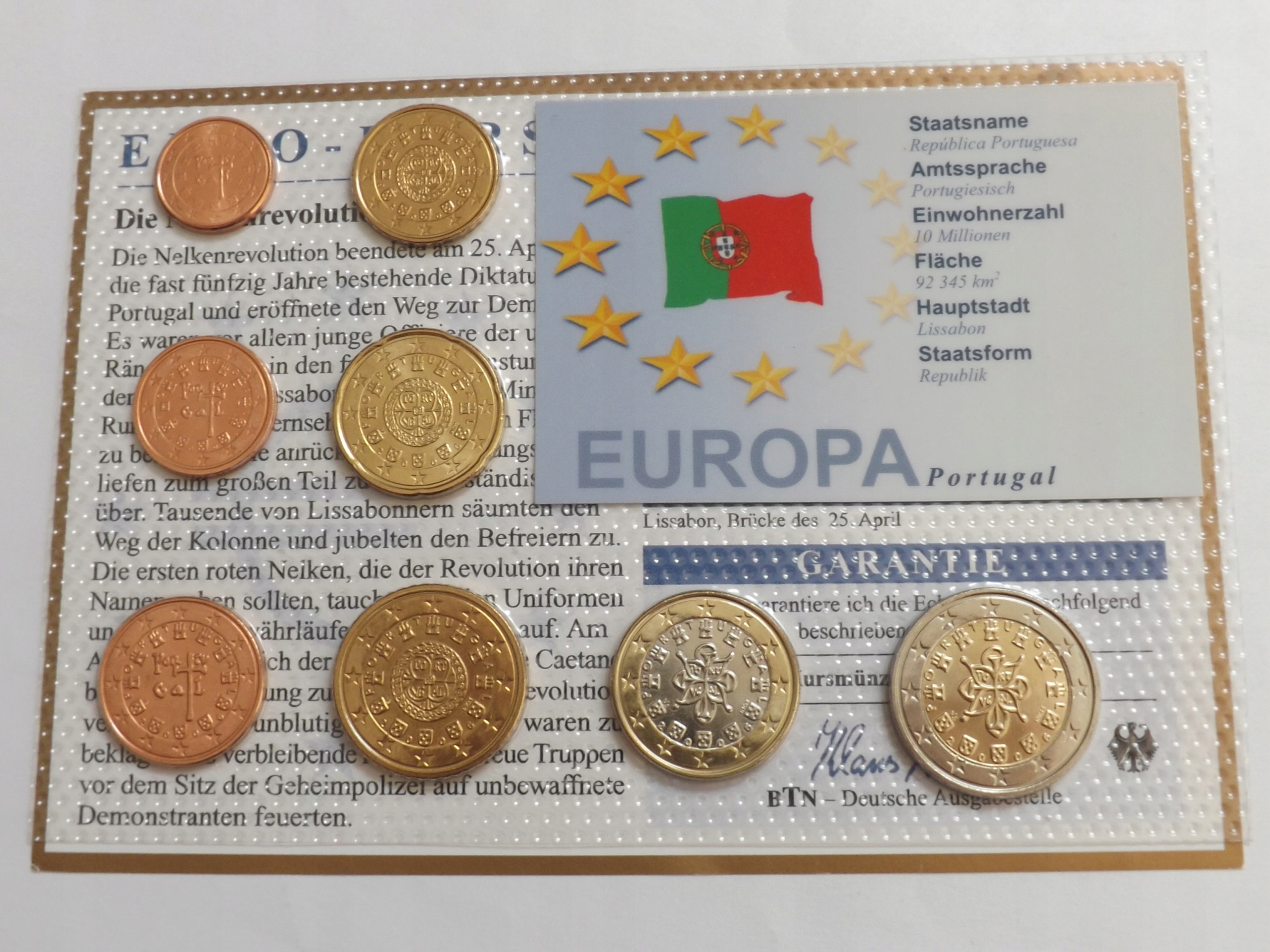 Повний набір євро монет Португалії 2006 року, 8 сертифікатів UNC