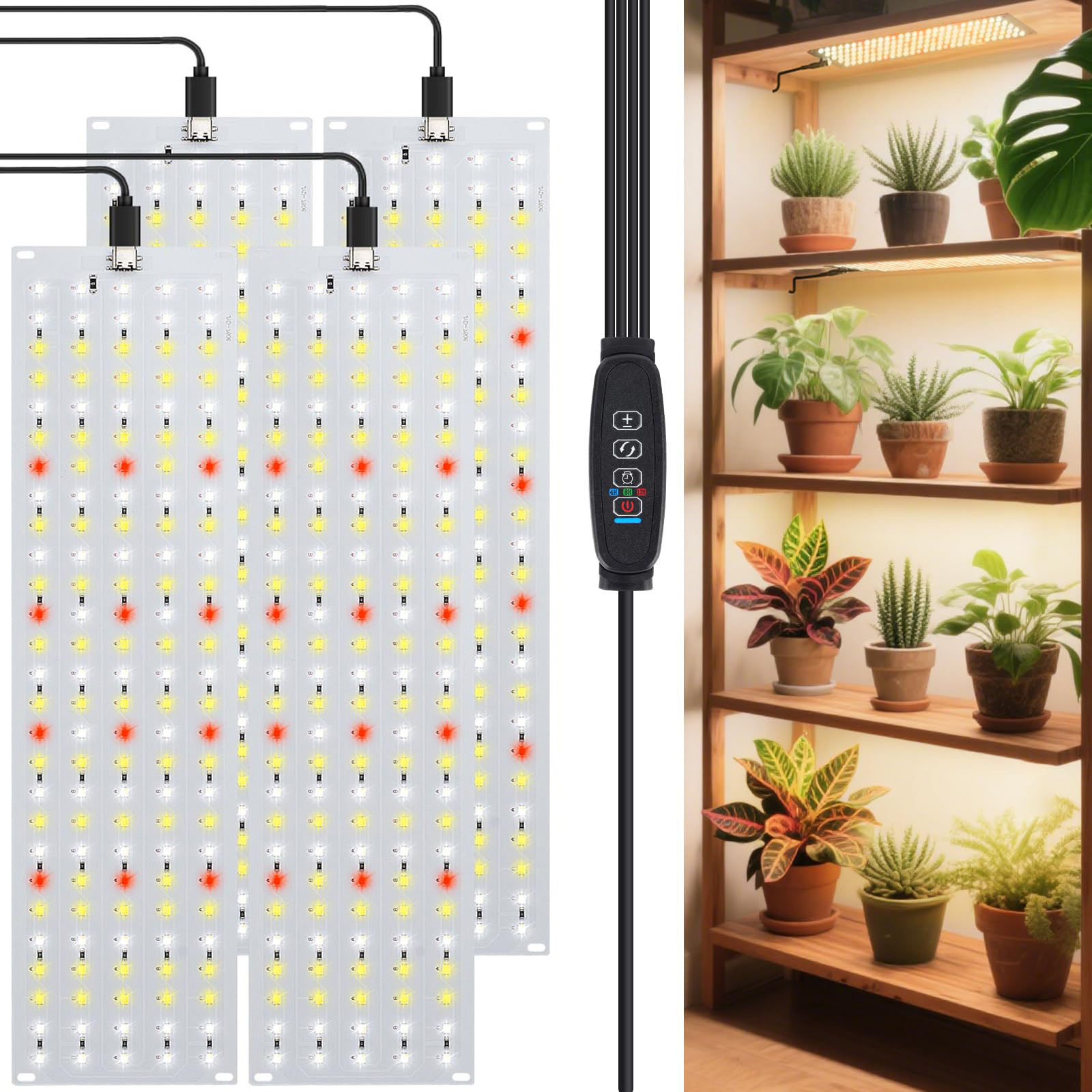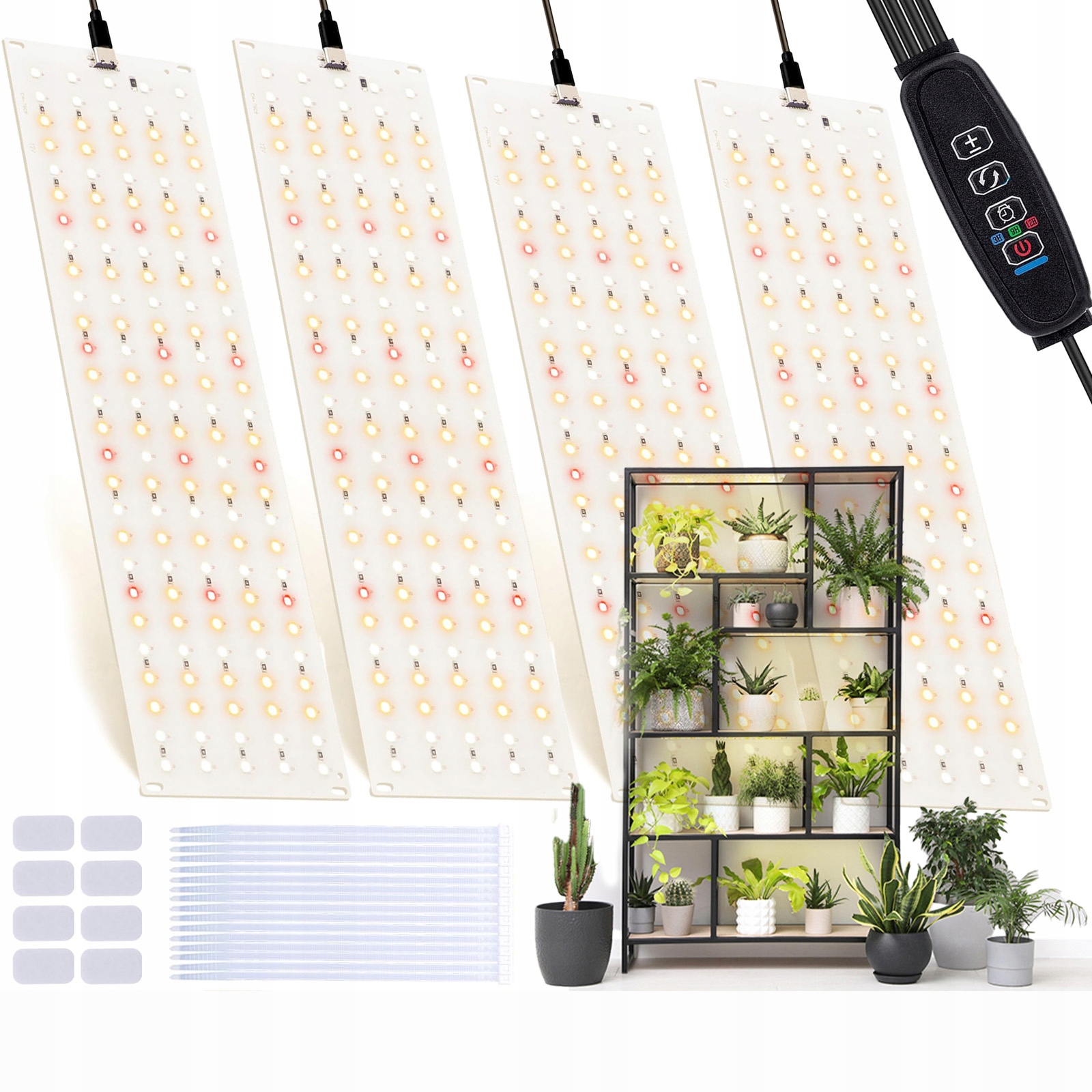 【Diy Lamp для вирощування DIY】 Лампа складається з чотирьох ультра -високих панелей і може бути гнучко відрегульована, адаптуючись до різної довжини та ширини. Його можна повісити за допомогою зручних кабельних смуг або сховатися під поличками або шафами з подвійним клеєм 3 м, щоб заощадити простір. Лампа для вирощування рослин з повним спектром значно покращує діапазон світла та продуктивність рослин.