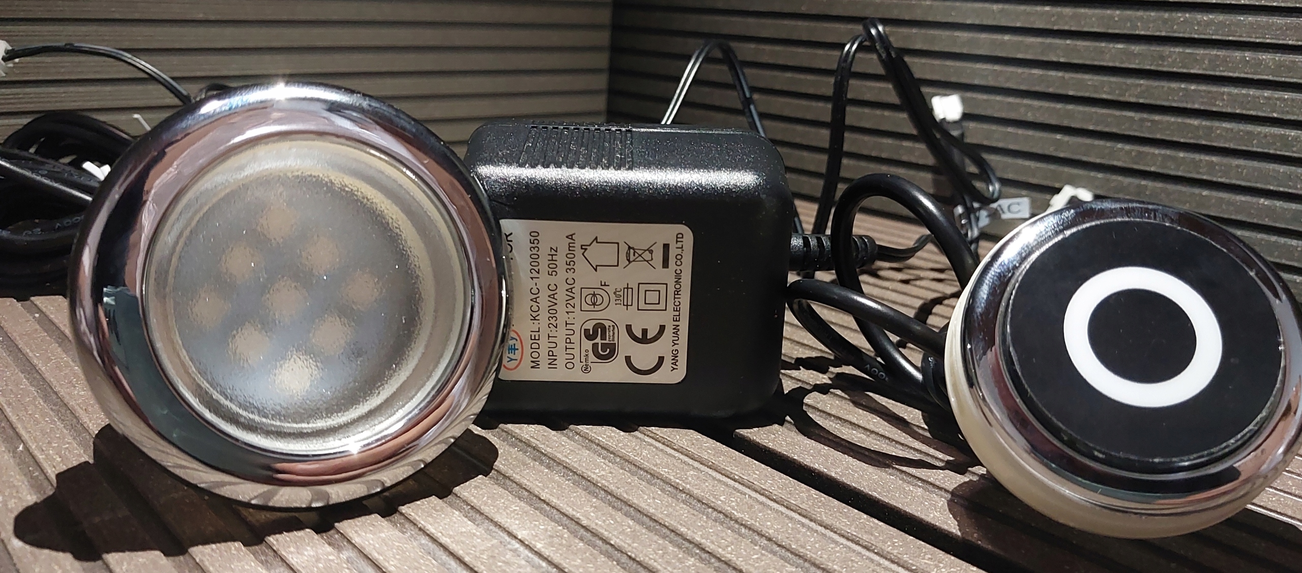 В комплекті: блок живлення, проводка, сенсорна кнопка з підсвічуванням, лінза з діодами - 1 шт.