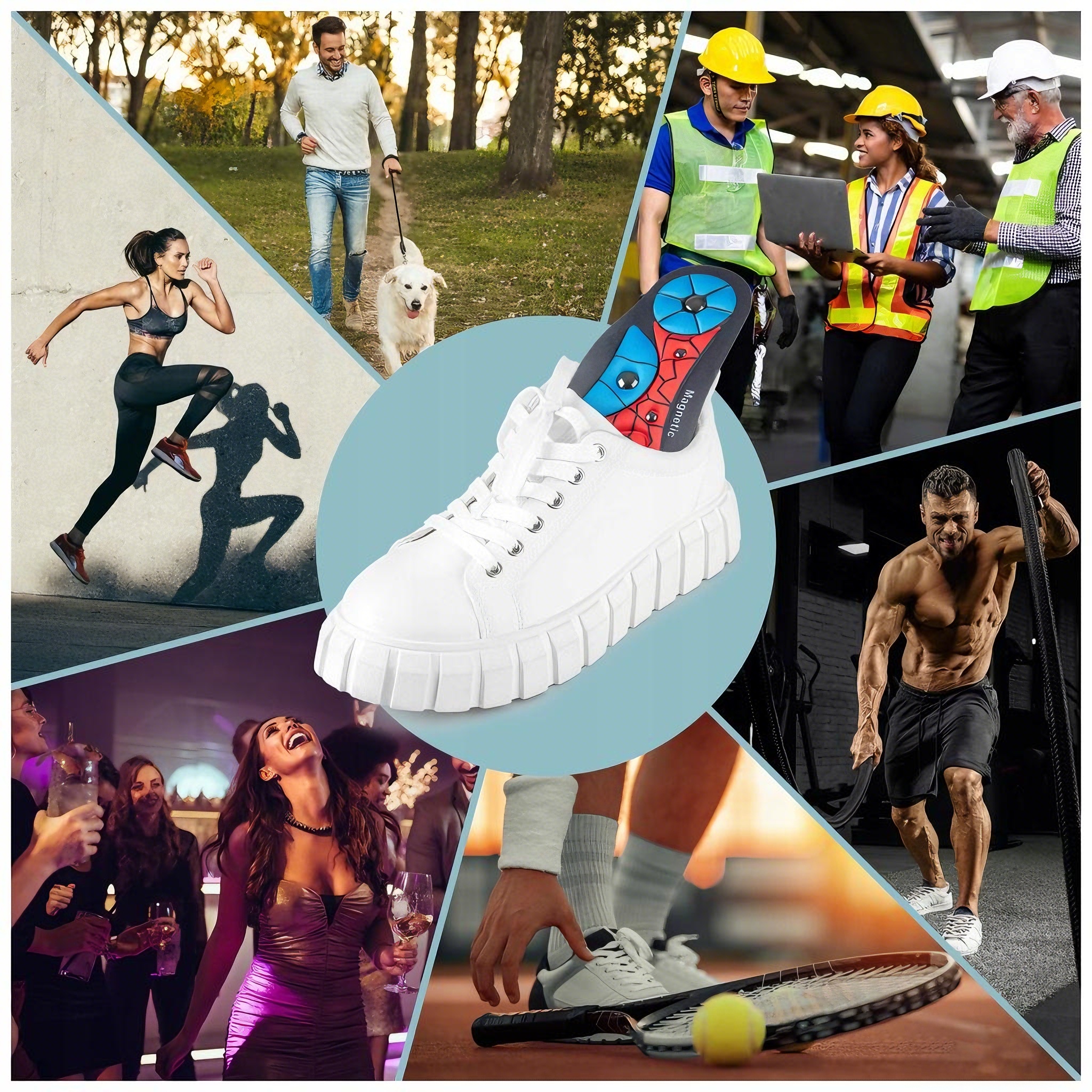 Інноваційні вставки, що поєднують силу точкового масажу та магнітотерапії. Вони допомагають полегшити біль у стопах, колінах і спині, покращують кровообіг і зменшують втому після довгого дня ходьби. Ідеально підходить для жінок і чоловіків, вони підходять до будь-якого типу взуття.