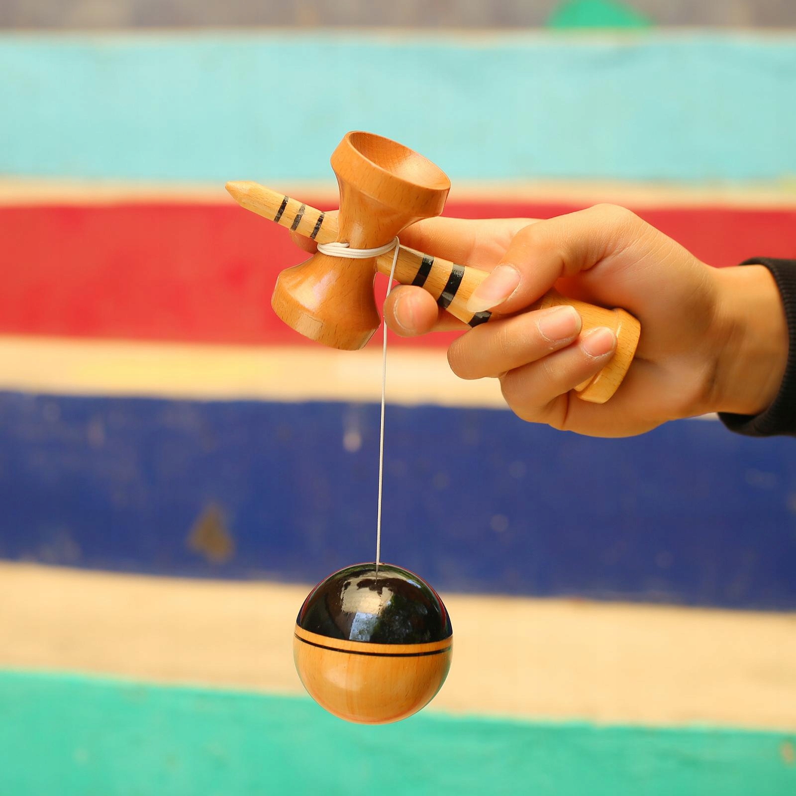 Повністю пофарбований дерев'яний м'яч Kendama. Іграшка з м'ячем для жонглювання. Чорний