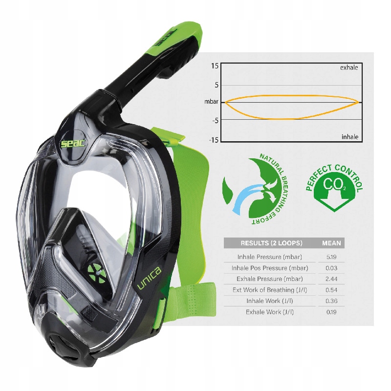 Почуття втоми та накопичення CO2 у дихальній системі можуть призвести до потенційно серйозних наслідків, навіть під час незначних фізичних навантажень, таких як підводне плавання. Ось чому SEAC дотримується двох основних принципів при розробці повнолицевих масок для підводного плавання: