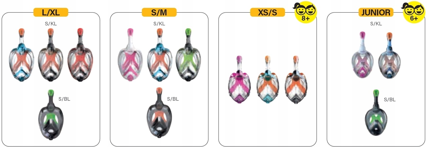 Маска SEAC UNICA доступна в таких кольорах і розмірах: