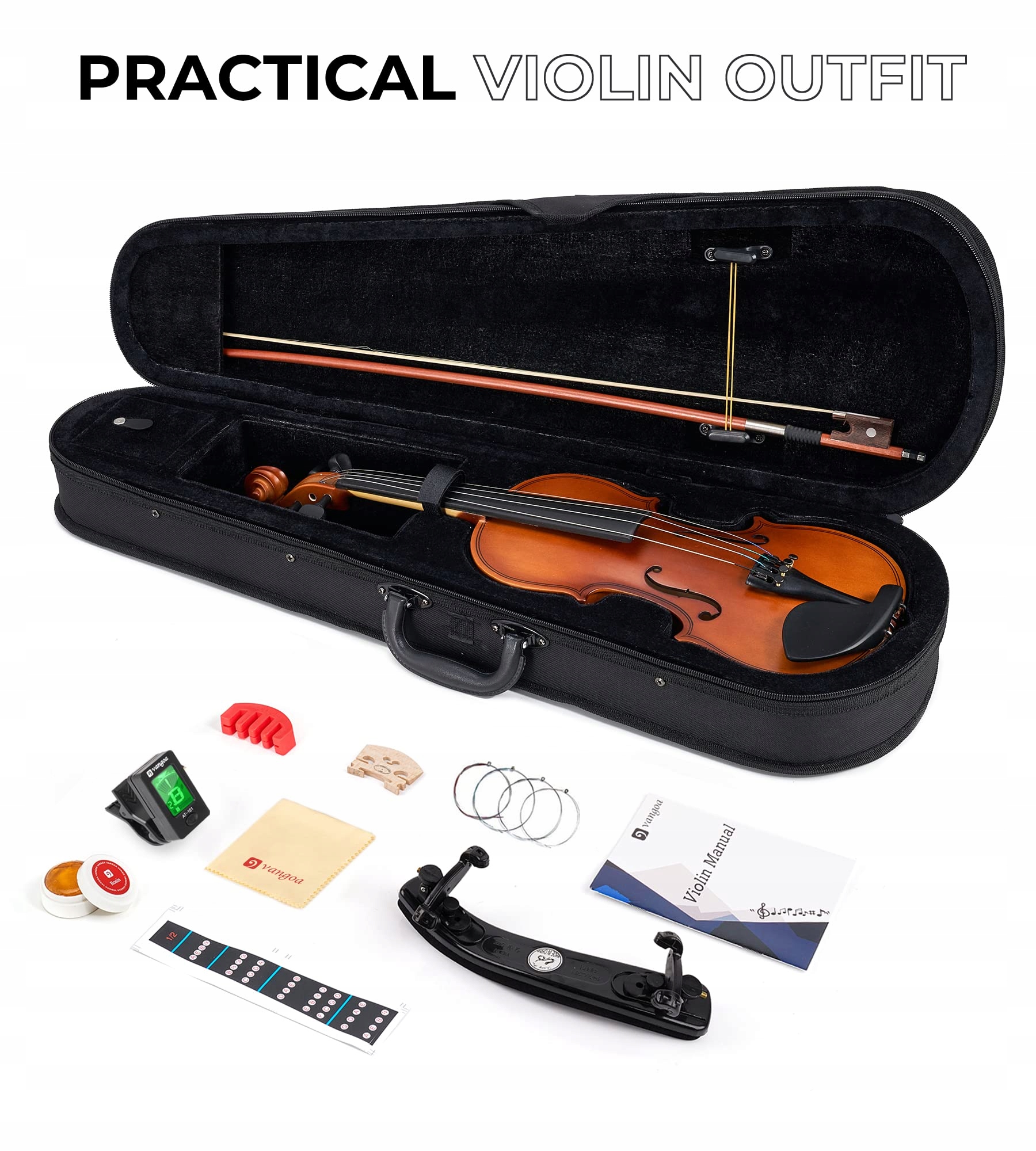 Набір для скрипки Vangoa легко настроїти завдяки високоякісним настройним кілкам і цифровому тюнеру. Крім того, зручний посібник і наклейки з нотами допоможуть гравцям почати свою музичну пригоду. Легкий, твердий футляр захищає скрипку під час транспортування, а повний набір додаткових аксесуарів для початківців забезпечує все, що вам потрібно, щоб навчитися грати на скрипці.