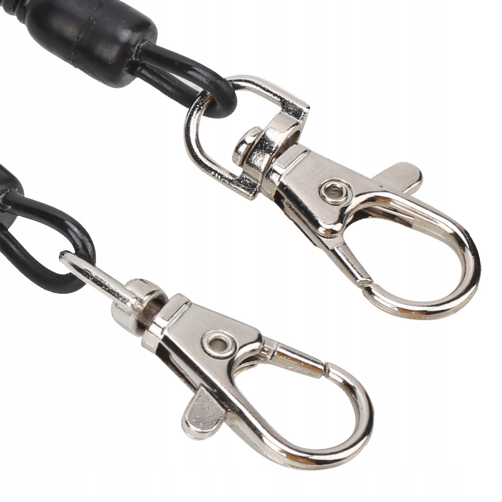 1. Виготовлений із високоякісного пластику, він м’який, міцний і має добру еластичність. 2. Обидва кінці шнурка є металевими пряжками. Виготовлений з високоякісного металу, який не піддається іржі та пошкодженню. 3. Після професійного тестування металеву пряжку можна неодноразово відкривати та закривати понад 5000 разів. 4. Він дуже гнучкий і може розтягуватися більше ніж на 130 см/51,2 дюйма. Ви можете використовувати його для риболовлі або походу. 5. В основному використовується для з’єднання дрібних предметів, таких як знаряддя для риболовлі, брелоки, і підвішування їх на рюкзак або тіло для легкого доступу та запобігання їх втраті або падінню у воду.