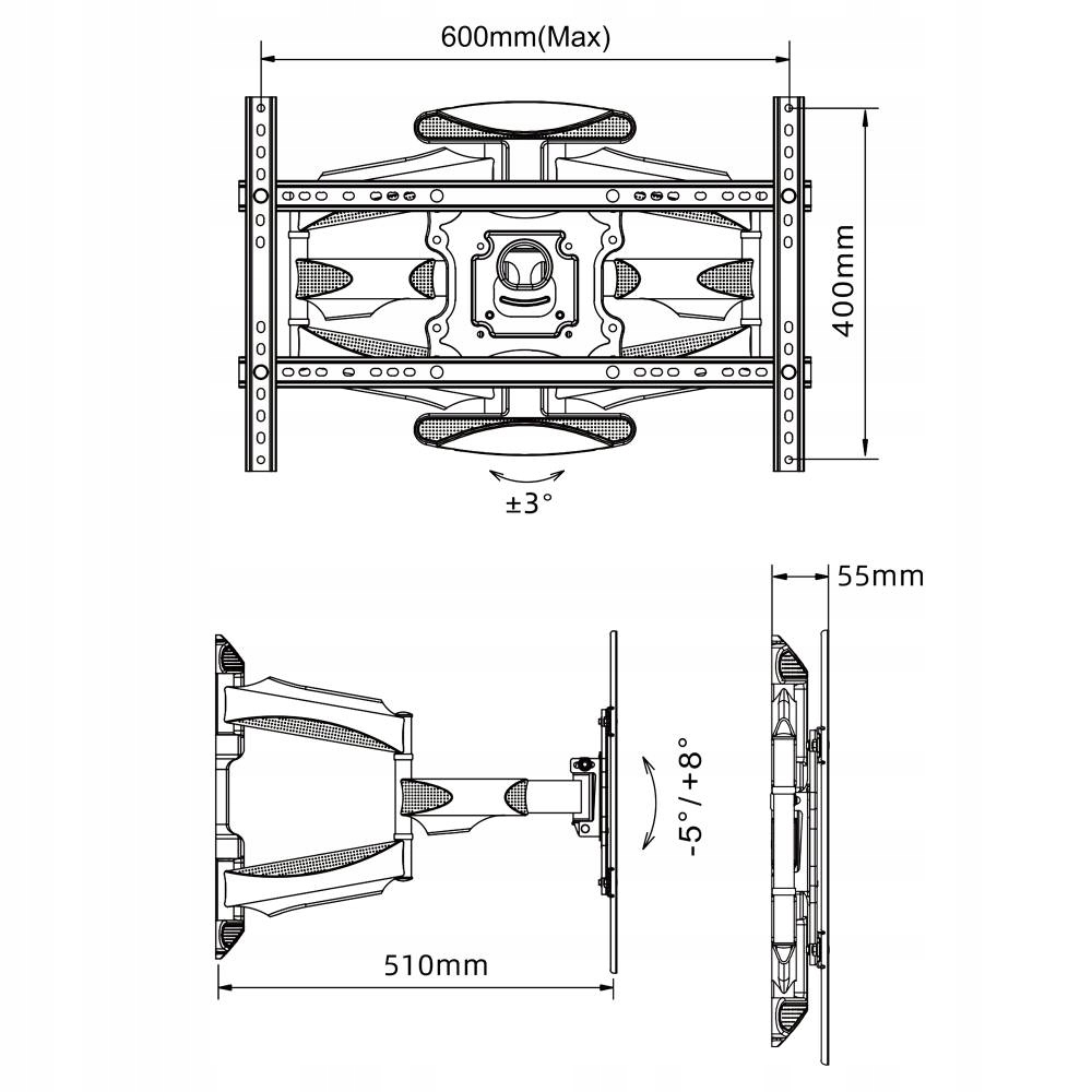 дозволяє налаштувати ширину кріпильних отворів на різні телевізори в черзі зі стандартом VESA. Повна сумісність Веса Монтажні отвори в діапазоні від 100x100 мм до 600x400 мм