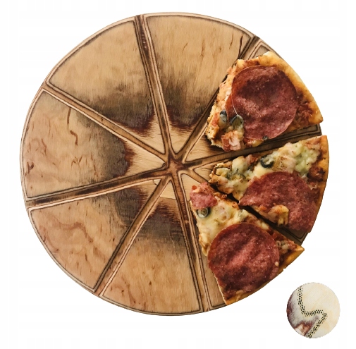 Ви любитель піци, і ви шукаєте дошку для піци в оригінальному та унікальному стилі? Ручна робота Стильна містка злегка обертається великою дошкою для піци 50 см. Гравірування - ідеальна ідея для практичного подарунка для коханої людини.