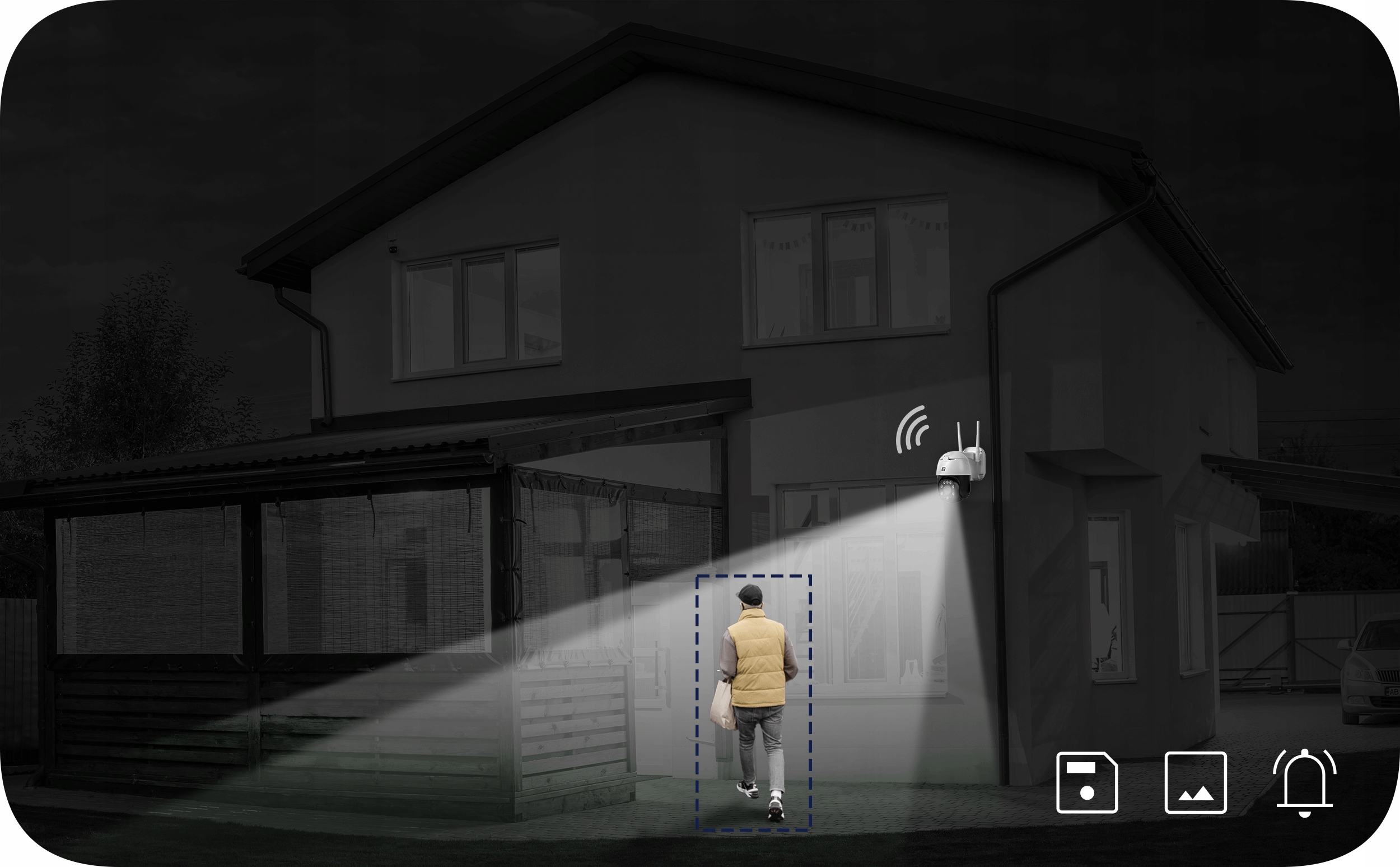 Камера підтримує функцію виявлення руху. Можна налаштувати цю функцію так, що коли, наприклад, з’являється зловмисник, ми отримуватимемо сповіщення на мобільний додаток.